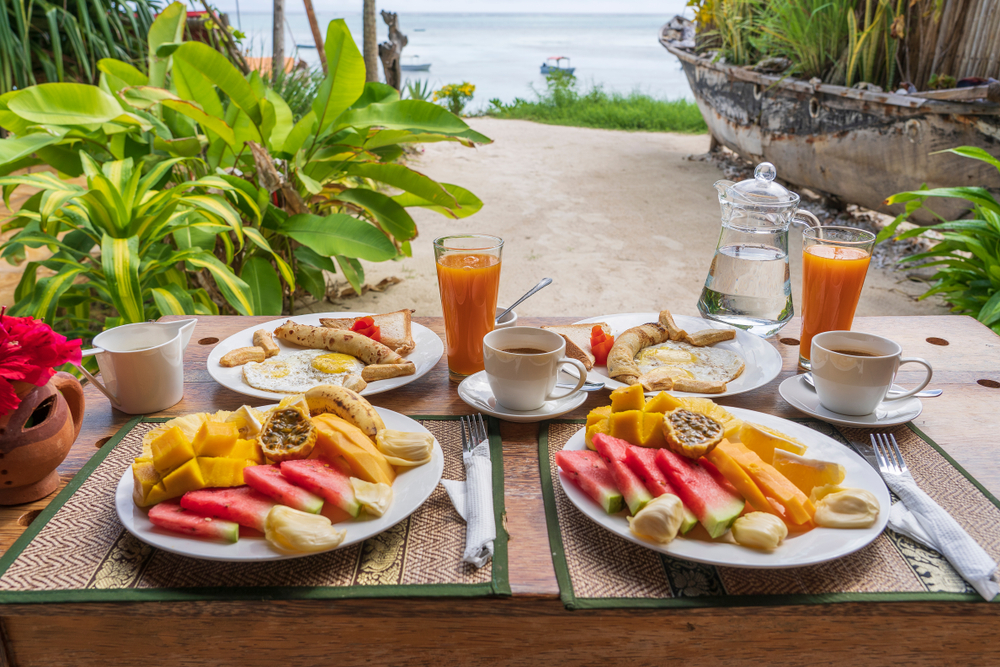 Завтрак в лодже.